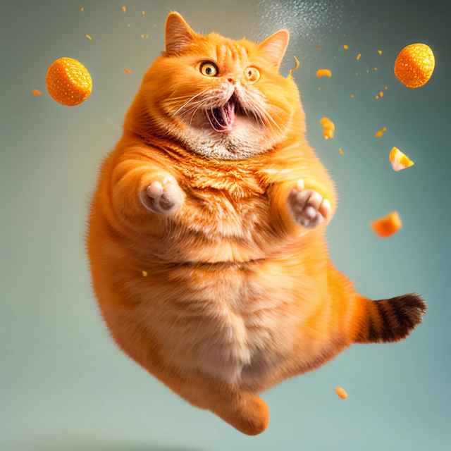 Fat orange cat eating orange cheetos